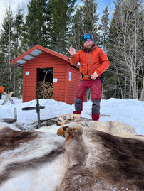 In de vorige blogpost hadden we al laten weten dat Dominique samen met enkele collega’s een ijsbad zou proberen te maken tijdens de laatste weken in Brändön. Gids Nils en chef Przemyslaw hadden er ook wel zin in, de andere gidsen trokken er hun neus voor op. Heel veel momenten zijn er niet meer waarin we dit kunnen organiseren samen met enkele collega’s, dus de dag na het staff-feestje besloten we het er toch op te wagen. 3 manuele ijsboren en 2 gigantisch lange ijszagen, meer hadden we eigenlijk niet nodig. Het ijs was er zo’n 80 cm dik, heel snel geraak je daar niet doorheen. We klaarden de klus uiteindelijk in 2,5 uur werken met 3 man. Nadien hakten en zaagden we hout in kleine stukjes, en konden we de op hout gestookte publieke sauna van Luleå Commune opstarten. Rond 13h arriveerden ook Patrick, Kajsa, Aina, Frederic, Sanna en Lisa op de snowmobile. Ze hadden worstjes en broodjes mee. Kortom: ideaal voor een gezellig typisch Zweeds momentje. Het afwisselen van het ijsbad met de sauna bleek een heerlijke ervaring. Goed om enkele uurtjes te kunnen vullen. ‘s Avonds waren we moe maar voldaan!